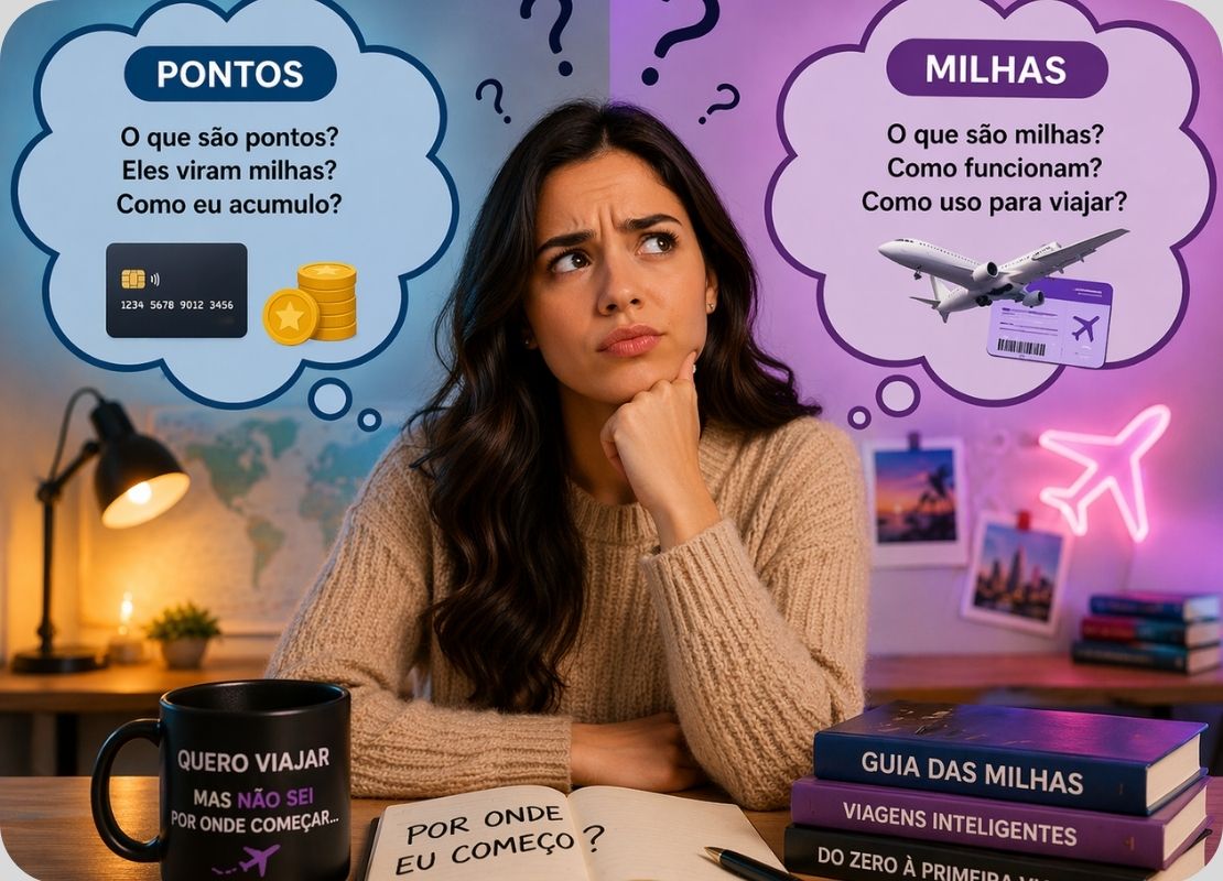 Você vai descobrir o que são pontos e milhas, qual a diferença entre eles e como esse sistema funciona na prática para transformar gastos do dia a dia em viagens.